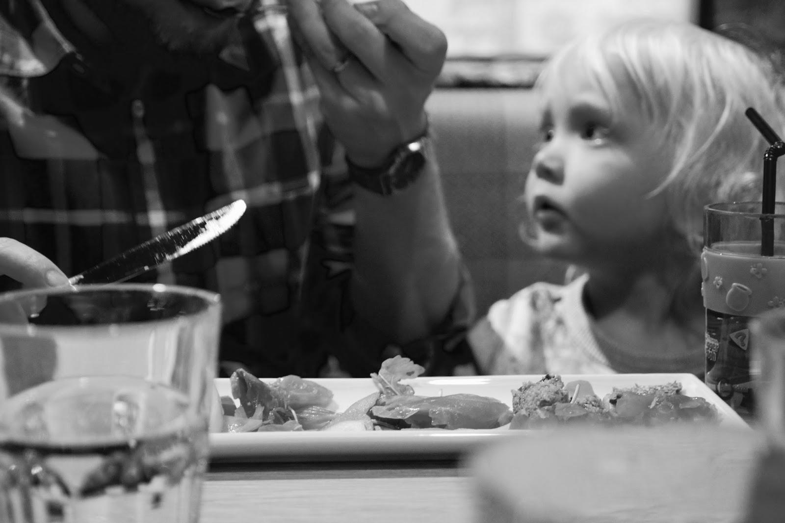 Tykätään syödä hyvin, mutta lasten kanssa ollaan viime aikoina käyty melko harvakseltaan ulkona syömässä. Esikoinen on tästäkin huolimatta innokas ravintolakävijä ja ehdottaa lähes päivittäin haluavansa syömään kaupunkiin. Ennen hoitolasta kävin usein lounailla omien lasten kanssa. Kerran yksi ystävä päivitteli, kun sohelsin kahden alle kaksivuotiaan kanssa kassalinjastolta pöytään. Siinä sivussa imetin toisen ja avustelin syömisessä toista. Hyvin meni mun mielestä se reissu, vaikka ulkopuolisen silmin saattoi näyttää hieman kaoottiiselta. Taisin tosin itse unohtaa syödä, mutta ei sen niin väliä.