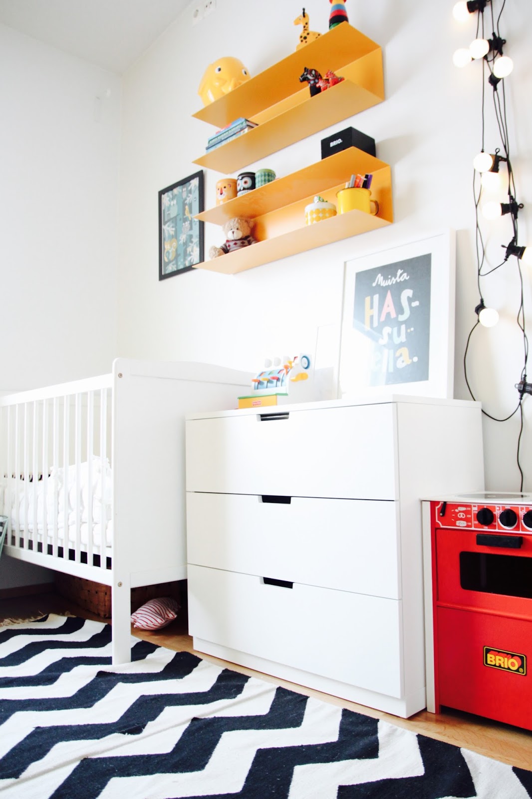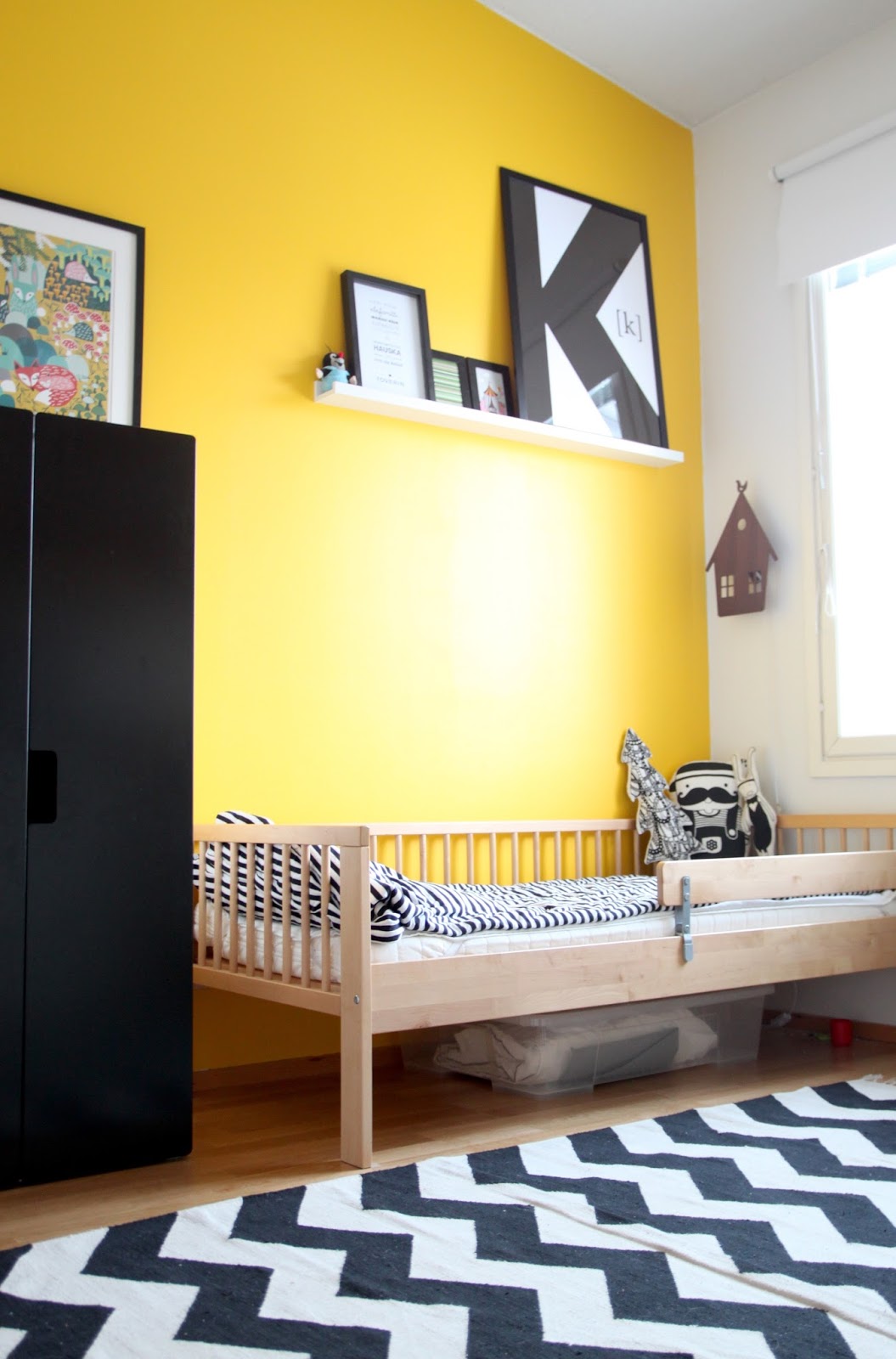Eilen järjesteltiin poikien huonetta, joka jostain syystä tuntuu hankalata sisustettavalta. Vielä on tauluja miten sattuu, mutta ehkä tämä tästä. Oranssi peltikaappi odottelee vielä maaluuta ja värikin on jo päätetty. Tykkään kyllä huoneesta kovasti lapsosetkin viihtyy kivasti. Siis silloin kun viihtyy..