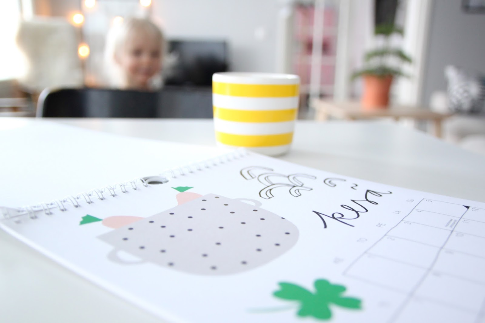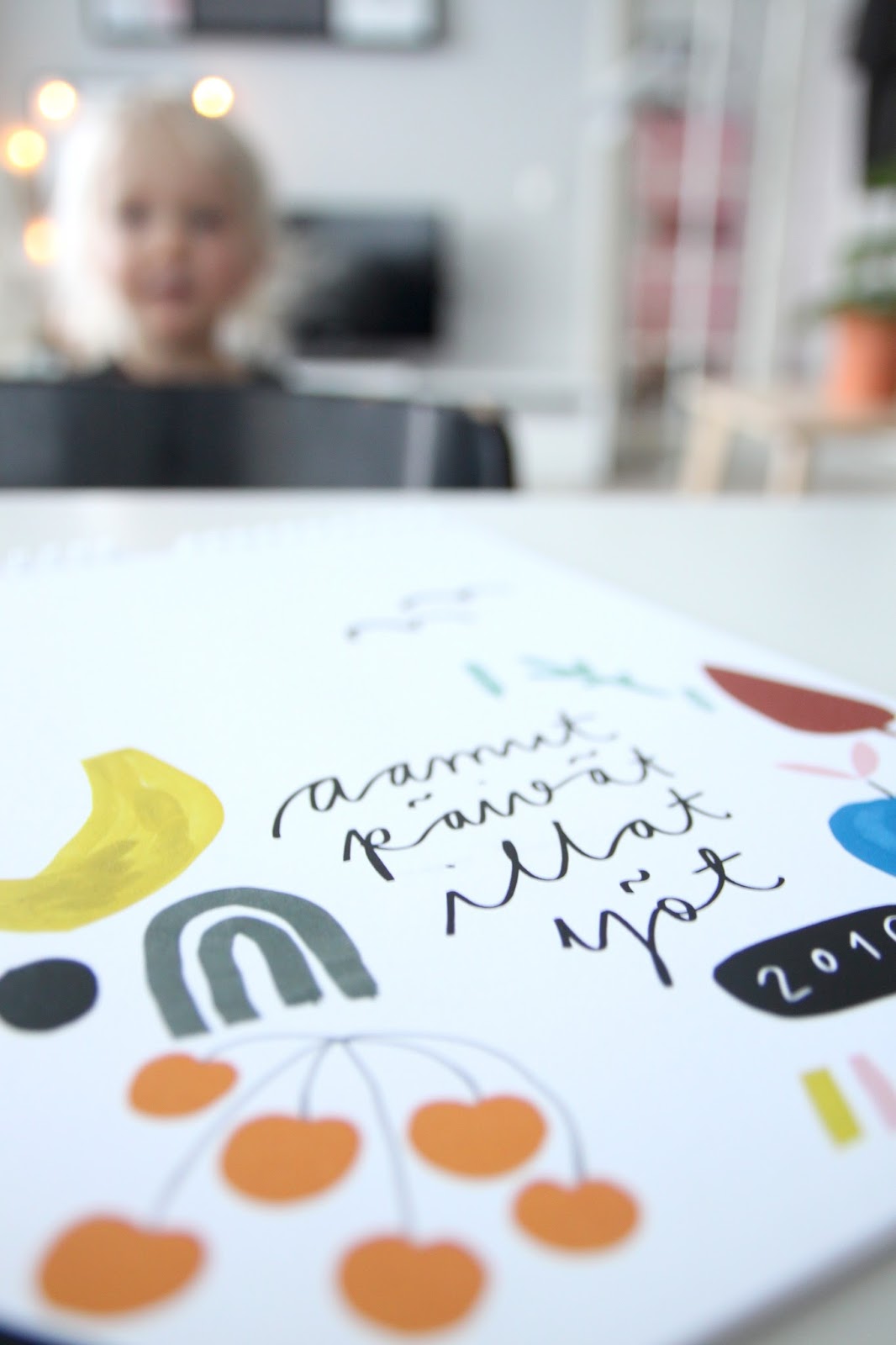 Tilasin netistä Kanelimaan aamut, päivät, illat, yöt -seinäkalenterin. Jo pelkästään tuosta kalenterin nimestä tulee ihana olo. Aivan hurjan kaunis kalenteri ja käytännöllinen. Sopivan pieni, mutta riittävästi kirjoitustilaa. Esikoinen tosin oli pettynyt, kun siitä ei voinut joulukalenterin tavoin avata luukkuja.
